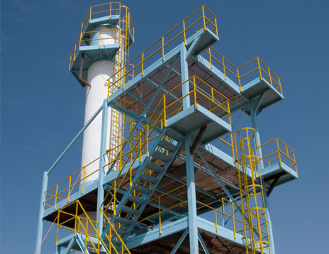 A 65 ft high multi level prop, which includes confined space features used for industrial or structural high-angle rescue. Mechanical raising & lowering systems can be practiced along with patient packaging and evacuation, pick-off techniques and self rescue. Overhangs for free fall are provided and high line systems can be used. A column with cat walks and multiple entry points varying elevations are incorporated to test the most experienced rescuer with external and internal industrial and confined spaces.